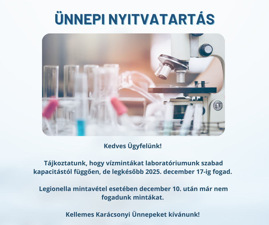 - Akkreditált vízmintavétel díja: 5.000 Ft + ÁFA / minta